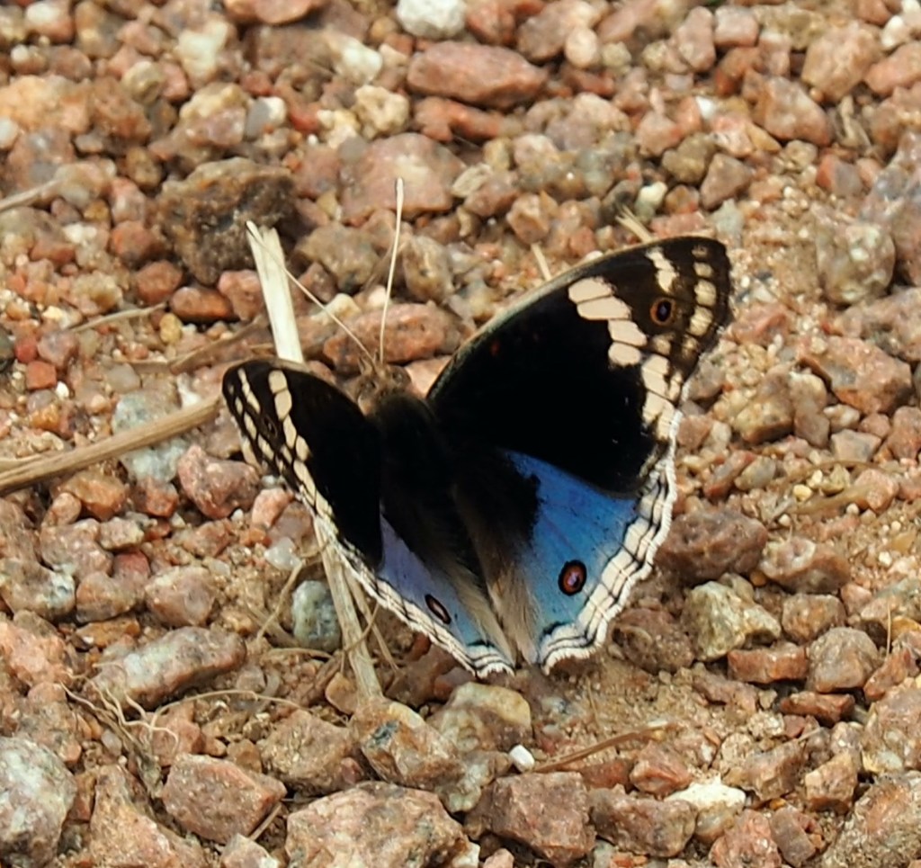 Back in December, it occurred to me that even though I had photographed close to 60 species of butterflies (Australia has more than 400), I had not yet seen a Blue Argus [Junonia orithya]. It is supposed to be a common (and widespread) species but I had not yet stumbled across one. It seemed to me that this was something that urgently needed rectifying. But where, exactly, should I start looking? After a bit of searching on the internet, I realised that I should be looking in dry, open bushland. So I looked during my lunch breaks on the bush university campus I work at – despite the searing December heat – but always with no luck. And just before Christmas we drove up to the Ross River Dam to look around there. Lots of Tawny Costers, and a bunch of creepy-looking empty Cicada shells stuck to big tree trunks, but no Blue Argus.