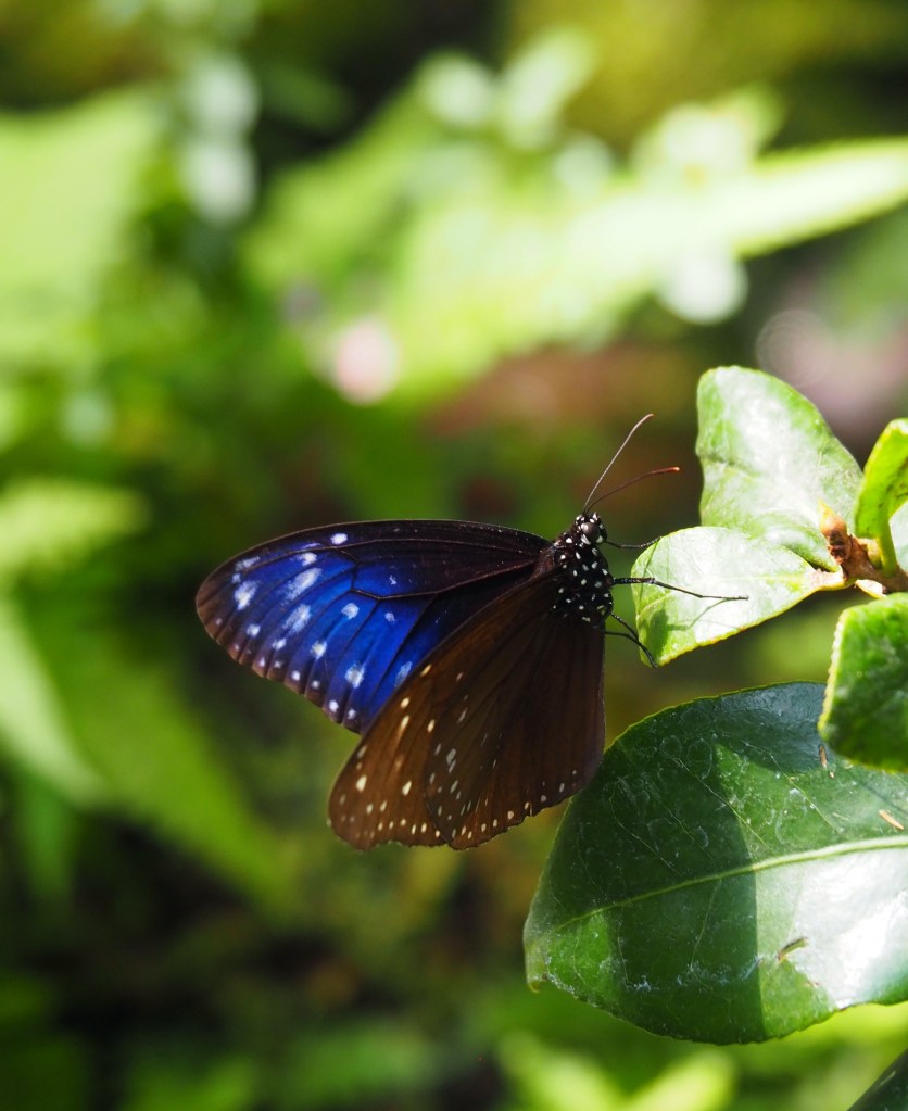 One day, when I was in the garden photographing some flowers, a big butterfly whizzed past me and landed on a chive flower-head. I know you’re not supposed to allow herbs to flower or run to seed but the bees and the butterflies seem to love them, so why not? This particular butterfly had parked itself quite close to me. And it didn’t seem to mind me being there. It sat there slowly opening and closing its wings a few times before deciding it was safe to bask in the sun with wings wide open. It was brown and orange and white, with a small pale blue patch near the top of each forewing. I was transfixed. It was some months later that I bothered to try and find out what sort of butterfly it was. Turns out, it was a female Hypolimnas bolina. Common name: Varied Eggfly. After that, things just seemed to snowball. I saw more and more butterflies. I took more and more photos. I grew more and more curious.
